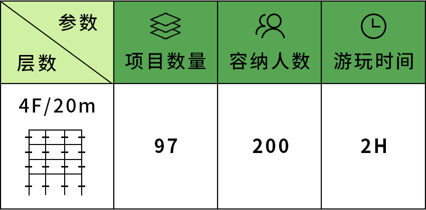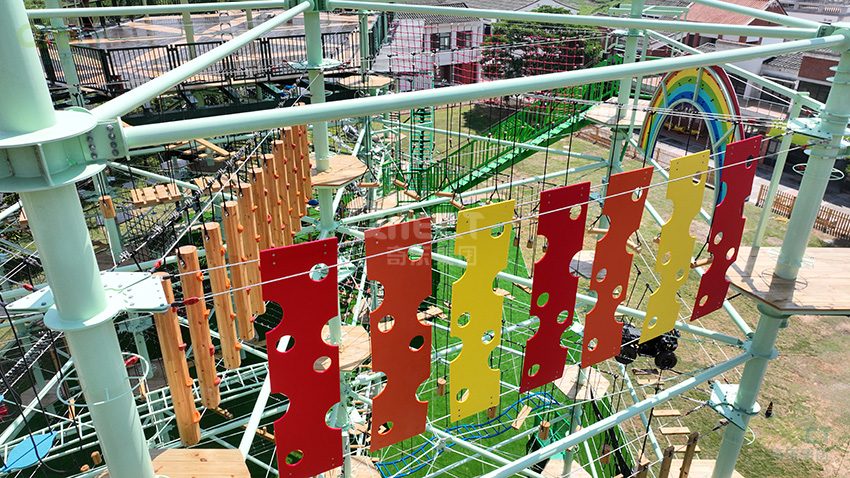 針對6歲以上兒童及初次嘗試的家庭客群,設置時空網道、蛇形橋、I LOVE YOU、蘑菇橋、阻礙木、茶則滑板、匍匐前進、XIHESHAN、障礙高低樁、蹺蹺板較低難度項目。