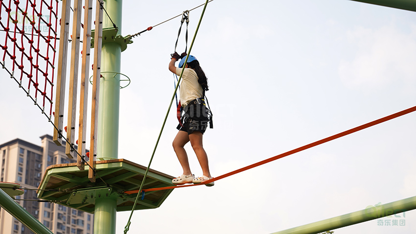 面向青少年及年輕群體,設計茶葉橋、飛行鳥橋、懸浮樁、七匹狼、直排繁星樁、穿針引線、圍棋網陣、蕩繩、流云、功夫木樁、文房四寶•毛筆、平衡圓木橋、波浪橋等33個需要平衡力與協調性的關卡。