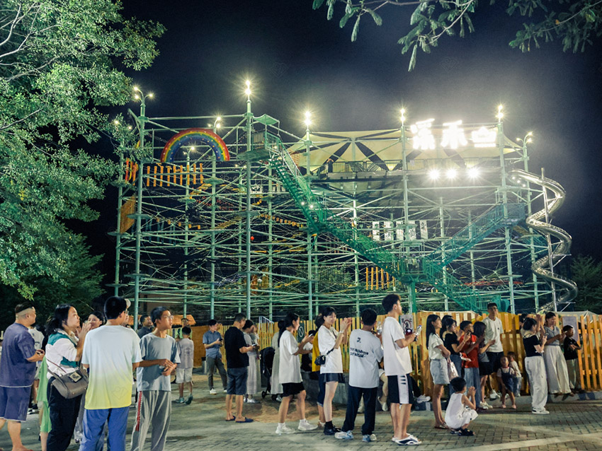 溪禾山水晶塔的落地,豐富了園區的體驗層次,顯著增強了對親子家庭的吸引力,延長游客停留時間,并帶動餐飲、住宿等二次消費。