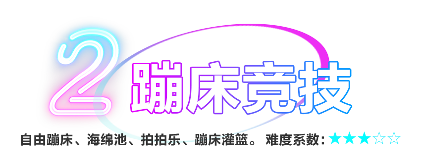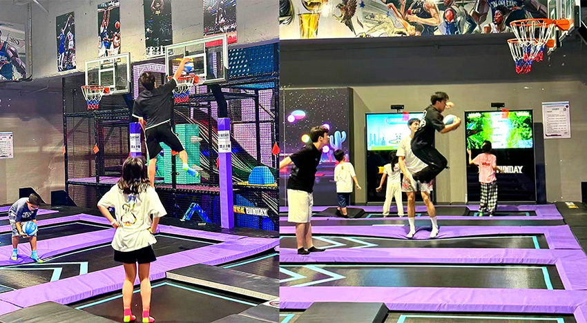 蹦床競技區(qū)是集自由蹦床、海綿池、拍拍樂、蹦床灌籃等于一體的綜合運(yùn)動(dòng)區(qū)域。可以體驗(yàn)一把扣籃的感覺和海綿池斗智斗勇的對(duì)決!也可以進(jìn)行各種團(tuán)建活動(dòng)。