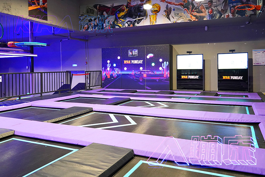 根據(jù)場地實(shí)際布局情況,我們的設(shè)計(jì)師將場館設(shè)計(jì)為7大區(qū)域,即彈跳迷宮區(qū)、蹦床競技區(qū)、極限挑戰(zhàn)區(qū)、高空拓展區(qū)、靈感運(yùn)動(dòng)區(qū)、數(shù)碼運(yùn)動(dòng)區(qū)和功能區(qū)。