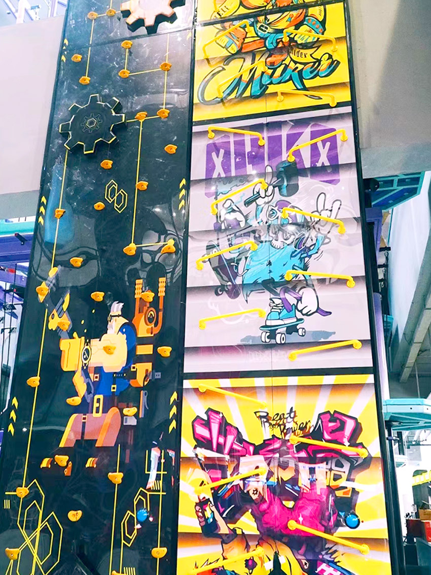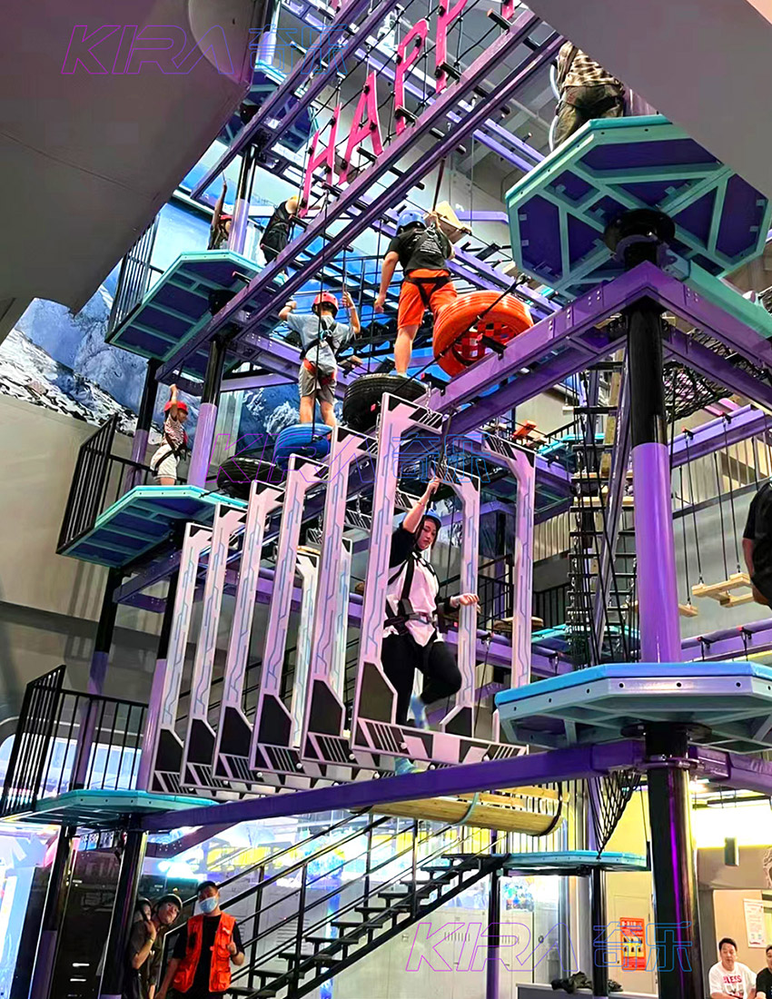 設(shè)計(jì)項(xiàng)目:蹦床、彈跳迷宮、攀巖、滑梯、拓展步道、VR戰(zhàn)車、360°自行車、體感游戲等。