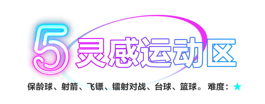 保齡球、情景射箭、鐳射對(duì)戰(zhàn)、真人CS、曲棍球、臺(tái)球、籃球、飛鏢等項(xiàng)目將體育項(xiàng)目與環(huán)境特效良好結(jié)合,帶來煥然一新的視覺體驗(yàn)。