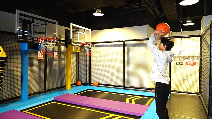 在蹦床上跳躍,以完成傳球、投籃等動作,可以鍛煉身體素質和協(xié)調能力,具有很強的趣味性和觀賞性。