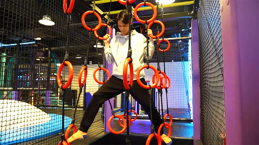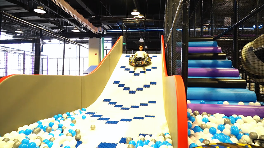 館是以“潮流運動”為主題的潮玩基地,館內設計了各種新穎、有趣的運動游樂項目,如創(chuàng)意攀巖、自由蹦床、螺旋滑梯、空中自行車、拓展步道、海綿池對壘、一站到底等游樂項目,是一個集娛樂、運動、競技、社交于一體的沉浸式體驗潮玩運動館。