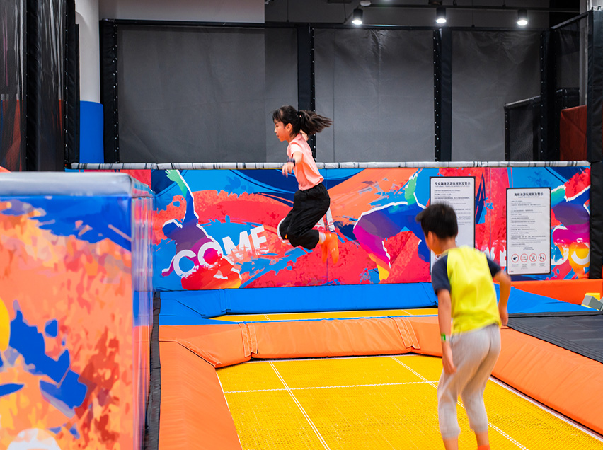 功能設計指的是蹦床公園內部各個游樂項目,也是進行差異化調整的最有效方式之一。一旦做好了場館消費人群定位,場館的功能設計就需要根據定位類型進行綜合布局和規劃,比如兒童類的場館需要多講究一下裝修風格中的色彩搭配;青少年類的場館更多的需要關注抖音流行的項目,功能設備選擇方面偏運動、新穎和刺激的功能項目。功能項目的設計和規劃可以多參考專業蹦床廠家的意見。