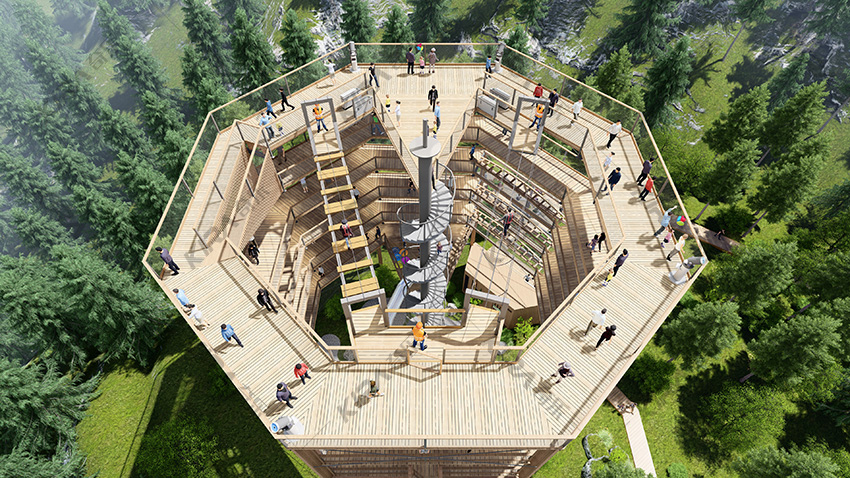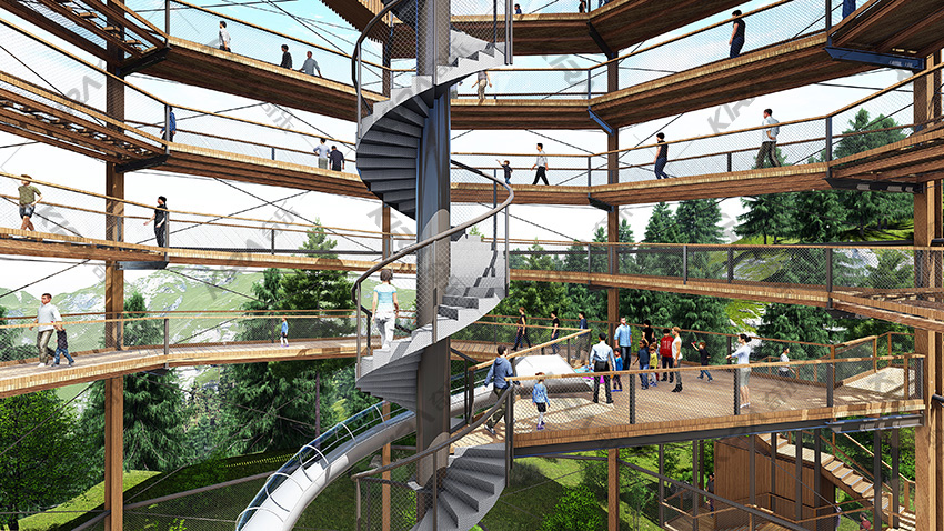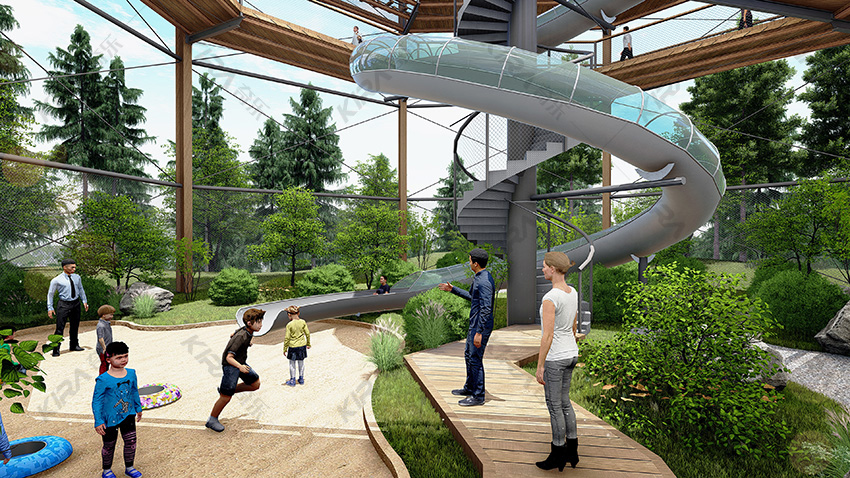 旋轉(zhuǎn)滑梯、螺旋步道、高空觀景臺