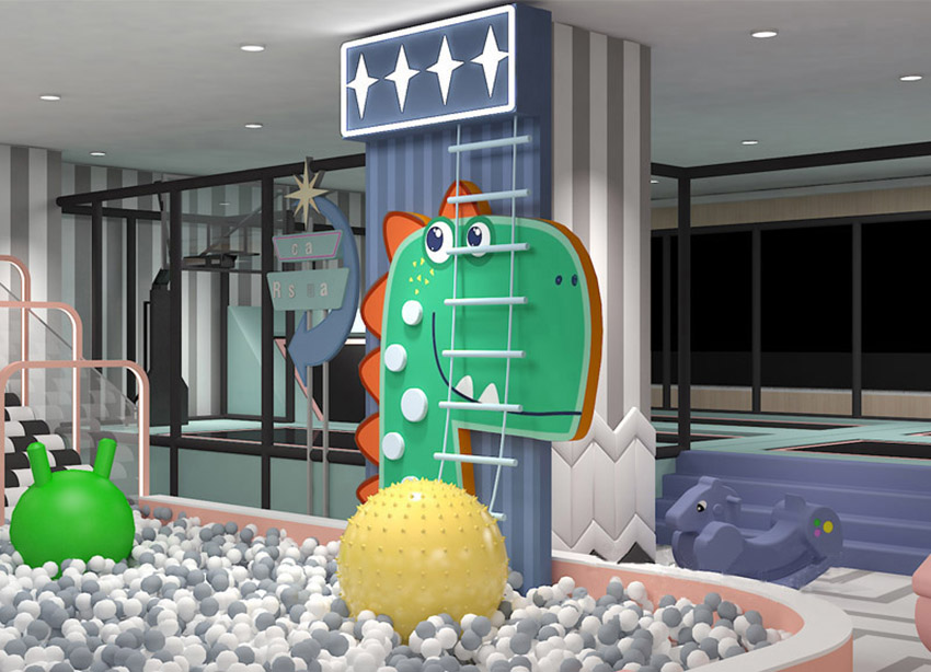 項目主色調以鐵綠色為主,場地空間布局層次分明、造型新穎規劃合理。以茉莉配色為設計理念,支持馬卡龍系列定制。內部游樂項目配置豐富齊全,包括滑滑梯、球池、椰子樹、彈跳迷宮、沙池、小蹦床等項目,造型設計活潑可愛充滿卡通風格,外觀色彩五彩繽紛能夠令孩子產生親切感,項目娛樂性互動性較強,清新而又舒適的游玩環境,能夠使孩子在玩樂中喚醒對美的渴望。