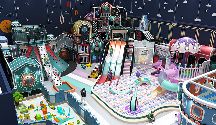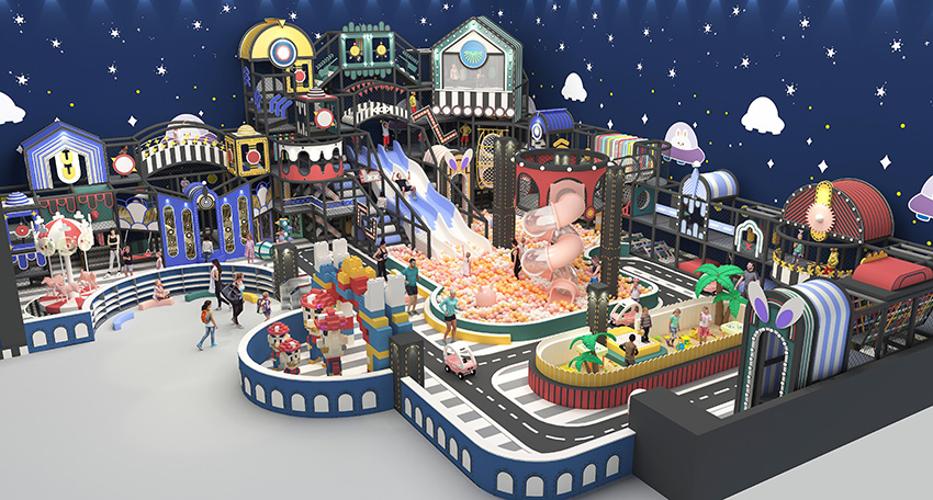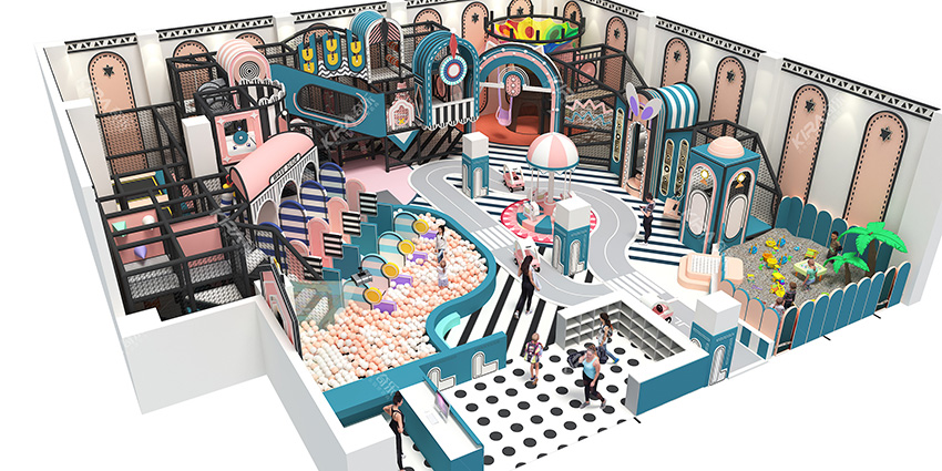 項目主色調以鐵綠色為主,場地空間布局層次分明、造型新穎規劃合理。以茉莉配色為設計理念,支持馬卡龍系列定制。內部游樂項目配置豐富齊全,包括滑滑梯、球池、椰子樹、彈跳迷宮、沙池、小蹦床等項目,造型設計活潑可愛充滿卡通風格,外觀色彩五彩繽紛能夠令孩子產生親切感,項目娛樂性互動性較強,清新而又舒適的游玩環境,能夠使孩子在玩樂中喚醒對美的渴望。